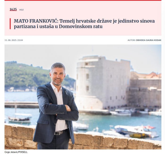 Mato Franković (HDZ) u intervjuu Nacionalu: Ne trebamo se pozivati ni na Jugoslaviju ni na NDH! Tito i Pavelić nisu kontekst Oluje, obojica su negativci