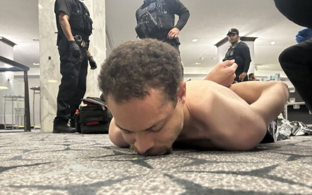 Prema policijskim službenicima, osumnjičenik je pritvoren nakon što je projurio kroz sigurnosnu kontrolnu točku i prošao pored policajaca na ulazu.